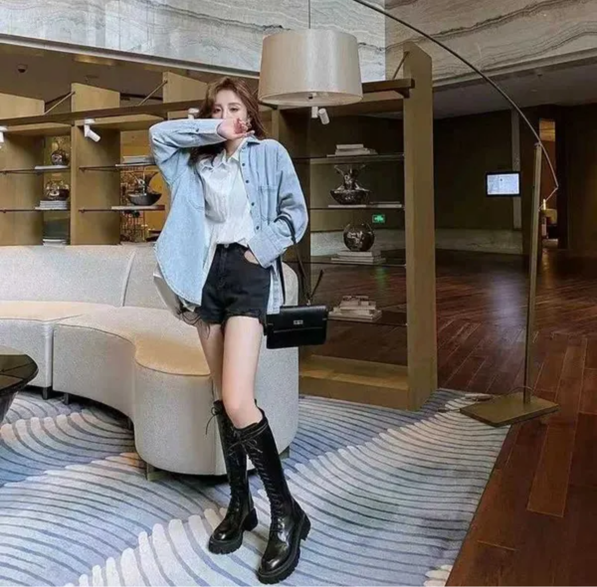 bottes hautes en cuir noir avec des lacets